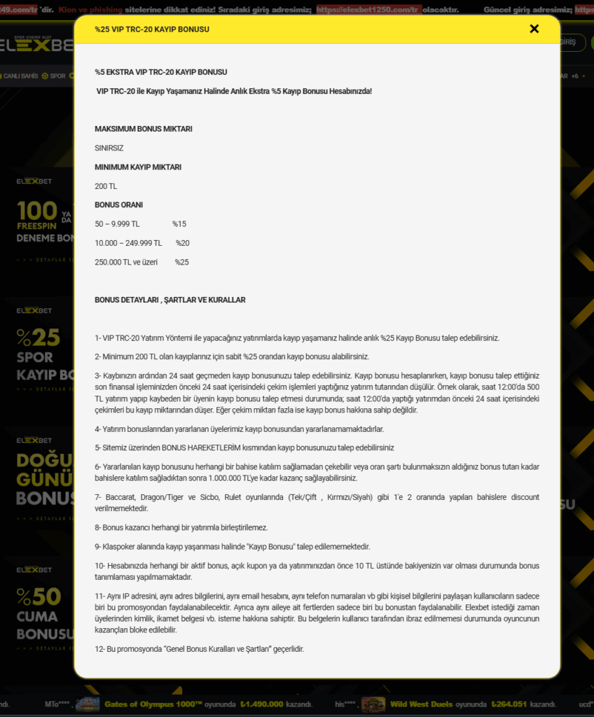 Elexbet %25 VIP TRC-20 Kayıp Bonusu